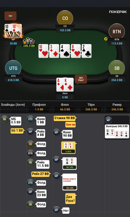 КК в АА, ДД в АА, стриты с флопа в ФХ (классическое покерное БДСМ), сеты в сеты старше и ВЕСЁЛЫЙ ФЛЕШОВЫЙ ПОПУГАЙ ривером у ениту_игрока.