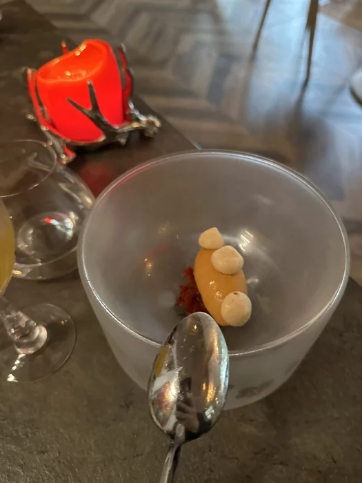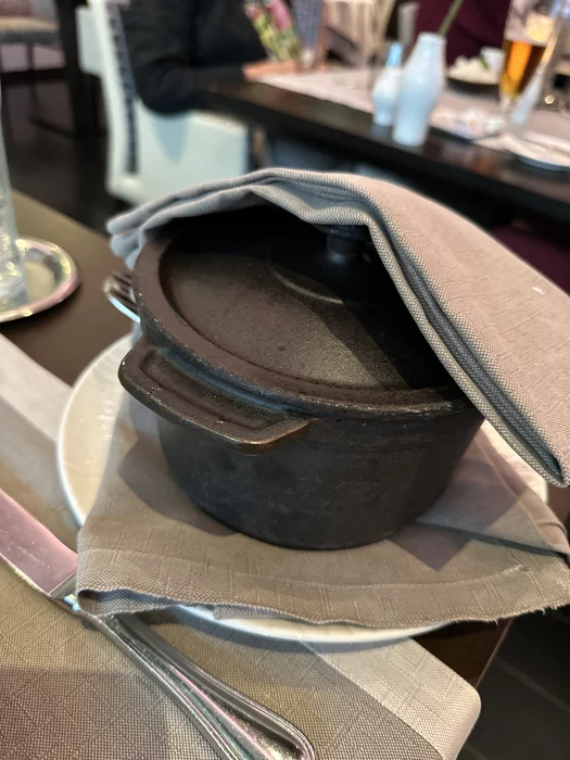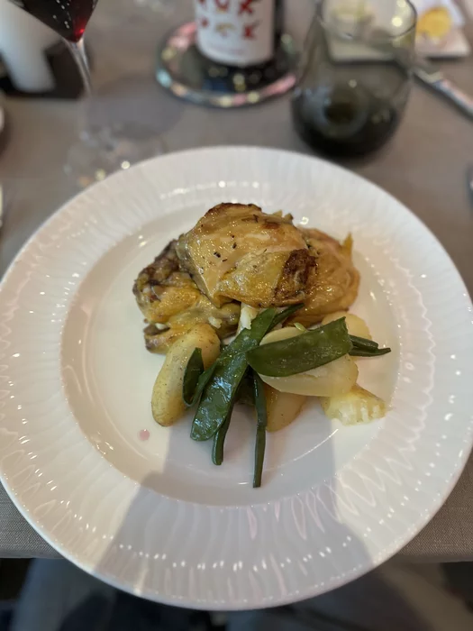 После спа снова отдохнули и сходили на ужин в гостинице. Из интересного - попробовал блюдо Coquelet entire roti en cocotte. По простому - жареный петух, подается в специальной кастрюльке Cocotte.