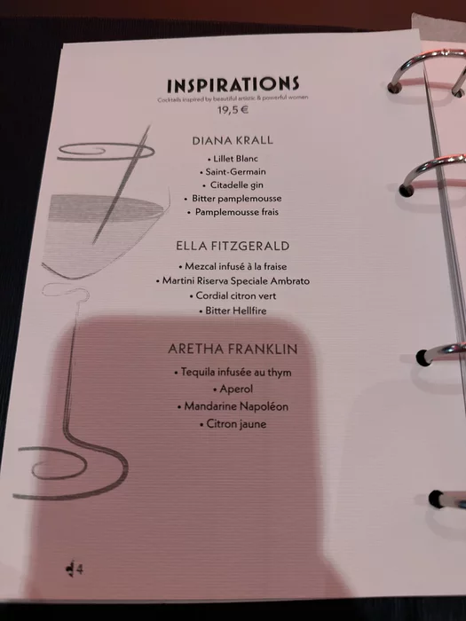 Главное открытие было в меню. Коктейль Diana Krall… Уже упоминал в блоге, что это моя любимая современная джаз исполнительница. И тут коктейль в ее честь, что крайне редко бывает с современниками. Легко можно оценить, с какими классиками она оказалась на одной странице.