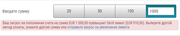 Приветствую. У меня у одного стоит предел депа со скрилла на старз 910 евро?