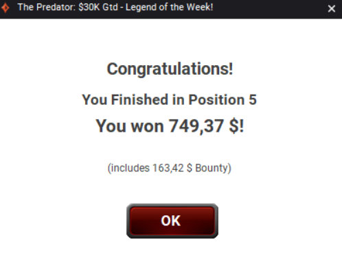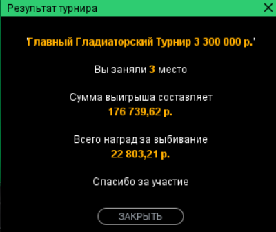 Всем привет, ударные вышли выходные. Играл в основном на покердоме и очень удачно! Вышло плюсануть 300 000 рублей за 2 дня(Забыл заскринить предфиналку в турнире хайроллеров по 15к рублей, в нем еще +50к), так что очень доволен :) Договорился с ПД и в субботу призовой во фриролле будет в 2 раза больше, а именно 10 000 рублей! Так что все жду, анонс напишу ближе к субботе. Неделя получилась очень продуктивная, дальше больше! По марафону тоже все идет отлично, хоть эта неделя была очень сложная, удалось отмазаться и БР на текущий момент 2400$/€ Боюсь сглазить, но этот месяц прям очень удачный, в МТТ по марафону +2к, +4к$ на ПД в этом месяце натащил за турниров 20, по турнирам вне марафона +1500$. Еще доход со стрима, в общем больше десятки в этом месяце уже заработали. Удачно я вернулся в покер. Надеюсь дальше будет только лучше :) Всем большое спасибо за поддержку, без вас этого ничего бы не было :) P.S. Очень сложно писать отчеты каждый день, совсем не хватает времени и сил. В конце месяца напишу полный отчет.