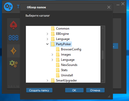 aquiahi, Привет, нужно указать путь к корневому каталогу: C:\Programs\PartyGaming