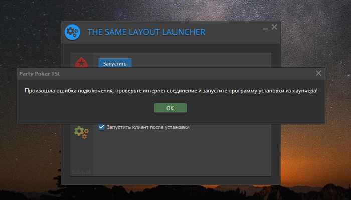 Turionvip, Привет, видимо та же причина. Попробуй удалить файл PartyLayout.exe в папке с программой перезайти в лаунчер > Install layout.