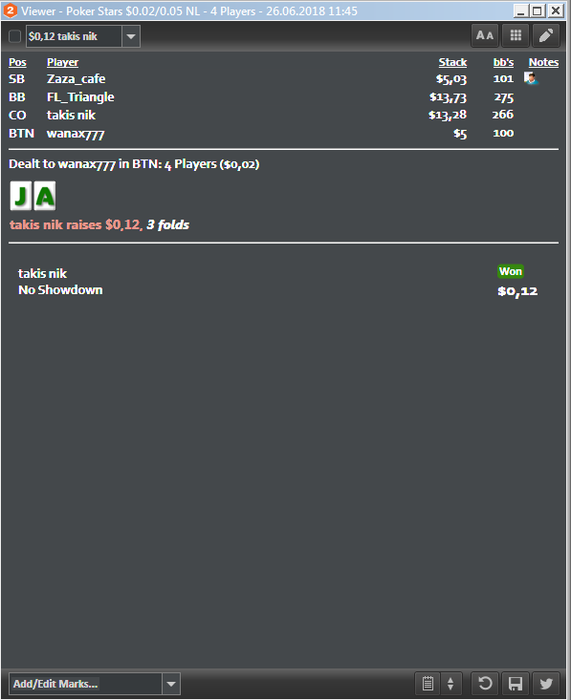 Как уже ясно из скрина мы должны фолдить префлоп своих АА/КК можно еще и QQ (да и вообще можете попробовать пофолдить все премиалки, как это делал я):