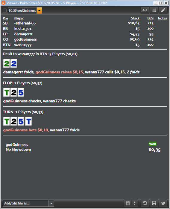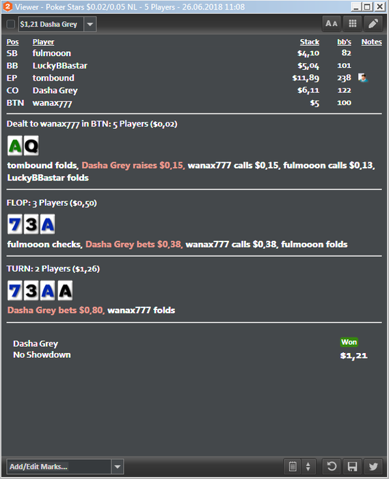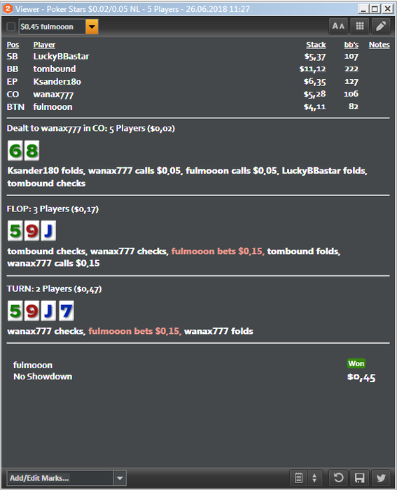 Вся сессия, которая мне даже понравилась и я решил провести ее около часа, играя 6 столов, обошлась мне всего: