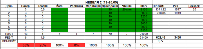 Первая неделя где я выполнила все) Лучше бы я с таким энтузиазмом в покер играла