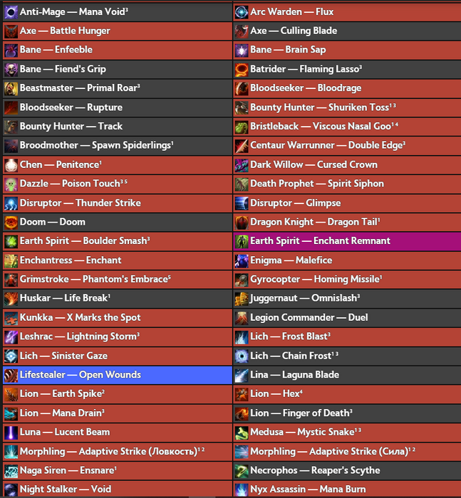 На драфте приходится сидеть и на сайте смотреть в табличку и читать какие заклинания могут опы применить