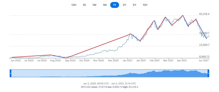 Это - график биткойна за год.