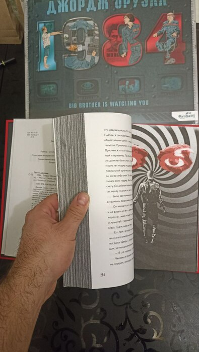 1. Книга 1984 Джорджа Оруэлла в коллекционном издании, твёрдый переплёт, яркая обложка, приятная бумага и стилизованное оформление всей книжки. Ну я просто не смог устоять, отдал за неё 1500р.