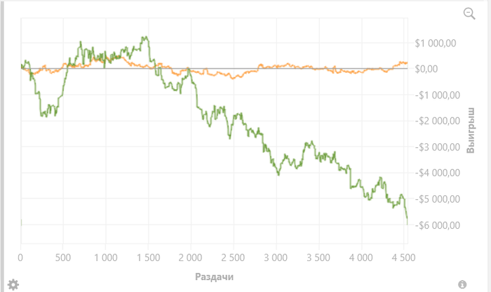 LightMen, ох у меня тоже жопа горит иногда от моих топвиннеров, они за зарплатой ко мне за столы заходят ловят сет в 50% случаев, но я как-то на них научился не обращать внимание это всего лишь часть игры, кому-то против тебя ран выдают в Годмоде, а кто-то об тебя все деньги может слить. Поэтому не трать энергию на ненависть или на то чтобы график против него вывести в плюс. Се ля ви...