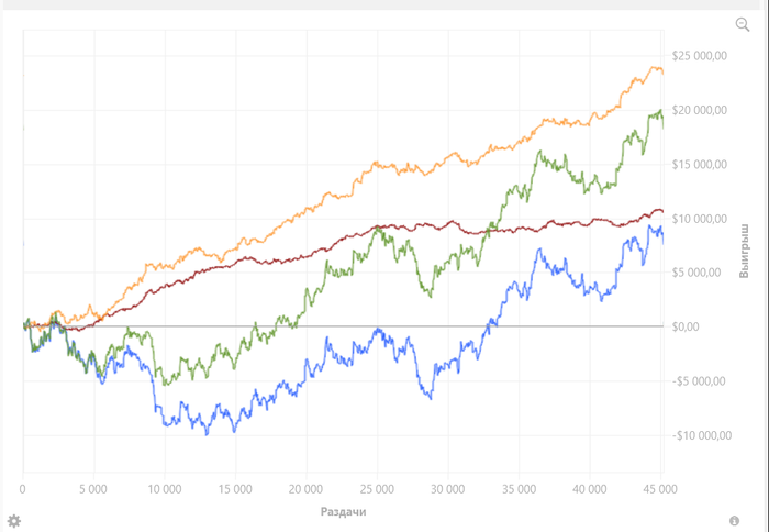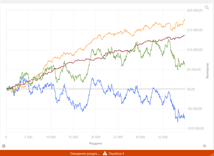 Вот у меня набежало 4.5к рук, но представьте насколько заходит человеку исключительно против меня если 4 года я не могу выиграть ничего.