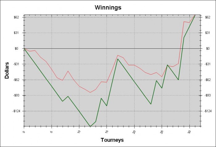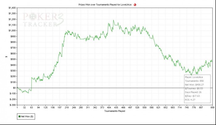 потому что я максималист. Мне всегда нужно двигаться вперед и только вперед, а в покере это не всегда возможно, увы. Самое обидное, что график по 15шкам сновь вернулся в самую низшую точку, это нереально огорчает, хотя по дистанции даже 1к туриков нет, поэтому объективно судить нельзя.