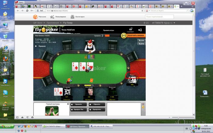 хз, в квипе реклама вылезла типа "играй в покер" я нажал, меня сразу перебросили на страницу браузера с уже зарегеным(ну по логину квипа я атк понял) акком с 5k$(естестно виртуальные. ну и там онлайн было2 человека, я сел играть, но потом уже собралось человек 6. но мне надоело, т.к. один опп играет наверно 97\2, и я ушел. может продолжу потом.