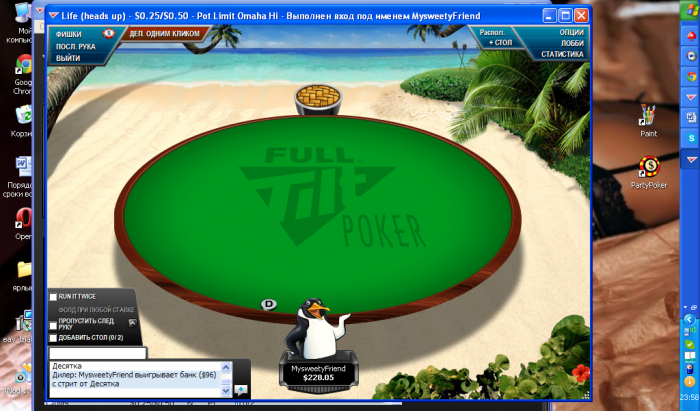 На лимите 0,05-0,1 увидел девушку , похожую на Фиби из «Друзей», подсел, понял незамысловатые правила этой игры. Собирай мелкие, да и нахуй, туз за единицу. Поймал апстрик, делал 10 долларов на этом лимите за час игры. А однажды вскрыл блеф Менди она написала в чате «WP», я посмотрел в поисковике что это значит и написал «thank you very much», она поставила смайл. Тот смайл, был как поцелуй, как будто бы она отсосала.