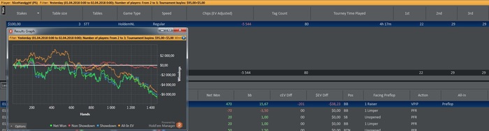 Wichdoctor81, ну тот график, что на 5000 турниров, это с 12 декабря, и ты верно посчитал. А март (около 1500 игр) выдался очень тяжелым, и там нулевой результат, на графике видно, что концовку на 60ом лимите сильно поджимала дисперсия. Играю мало, но стараюсь максимально качественно отыгрывать, над кол-вом серьезно буду работать, как уверенно закреплюсь на 100ках. Пока достаточно аккуратно действую там. Обычно 2 стола, и если настрой хороший, то могу добавить 3ий стол, но все равно на общем кол-ве этот момент не сильно виден. Вообщем пока выжимаю качество, дальше кол-во. Думаю порядок абсолютно верный.