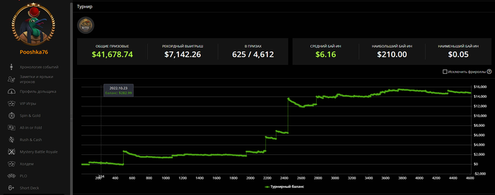Привет ritsar, совмещал покер с работой поэтому такое количество турниров, а так готов катать много.