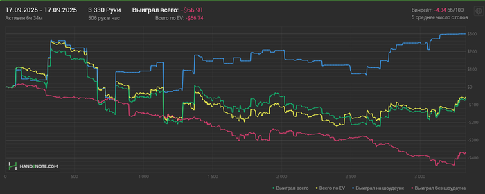 16.09.2025: 394 минут, 3330 рук, nl50-100 -$178.