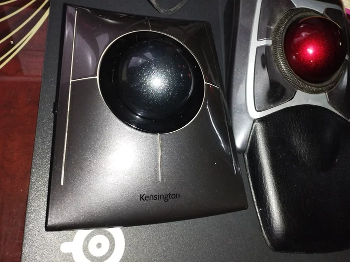 про само устройство: справа с красным шаром (коцаным) это старый трекбол у него dpi 400 всего