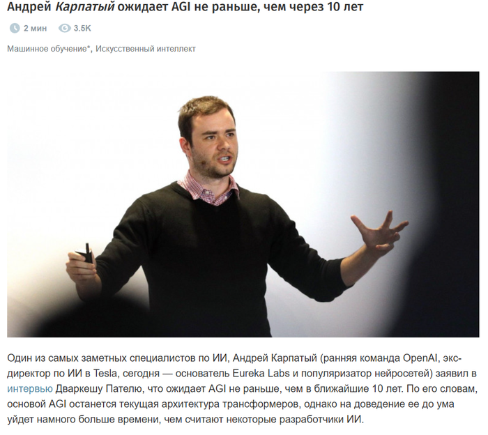 пс2 вообще я вижу AGI как машину обучающуюся на своих внутренних состояниях, пока конечно до такого уровня вычислений далековато, лет через 5 может появятся мощные машины для обучения такого уровня систем ... (дай бог лет через 5 ) ... может и раньше может и позже ... все упирается в перераспределение финансов в IT с зарабатывания в исследования ...