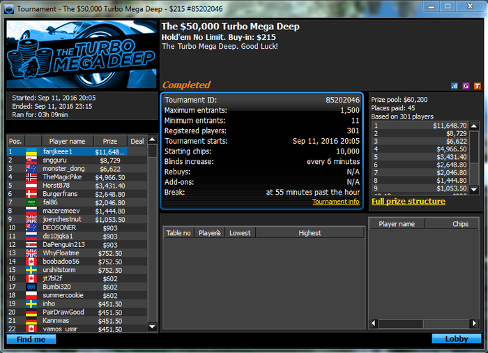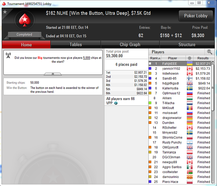 Причем сам ошибся сильно, несколько важных стадий одновременно было, где чекал лобби и не заметил, что в этом 18е - уже деньги, а запушил широко даже учитывая, что стэк вторым/третьим с конца был.