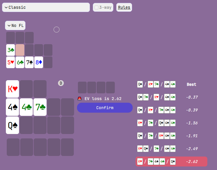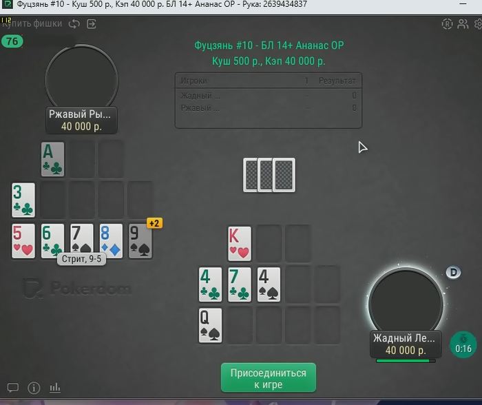 Не хватает классике фантазии помощнее , 15 карт и повтор от стрит флеша и сета шестёрок было бы норм