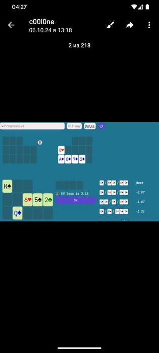 Сволк скинул что не заблуждается с тузом дама вниз все таки, с королем ещё не понятно, но чел то получается близко к солверу катал на 500 лимите