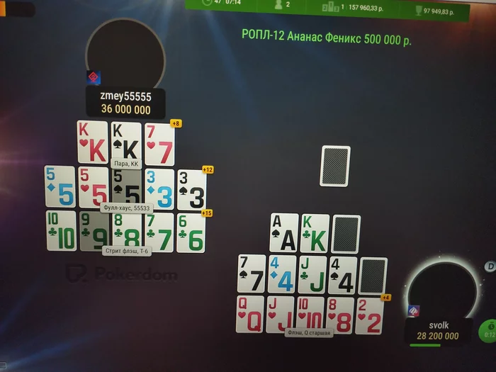 -4750 фишек отнимают, оппоненты +3750 +1000