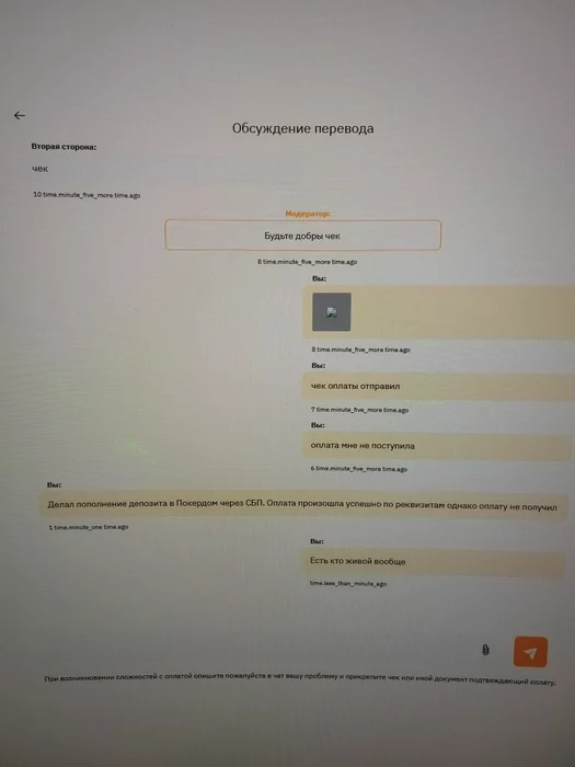 Добрый вечерочек. Хотел пополнить покердом через СБП но получилось какое-то кидалово. Оплатил все согласно таймингу и сумму какую была указана. Оплата прошла успешно.