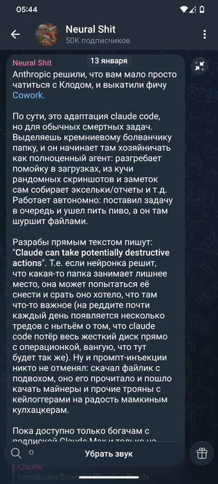 Недавно выпустили виртуального врача, сегодня выпустили виртуального помощника claude cowork: