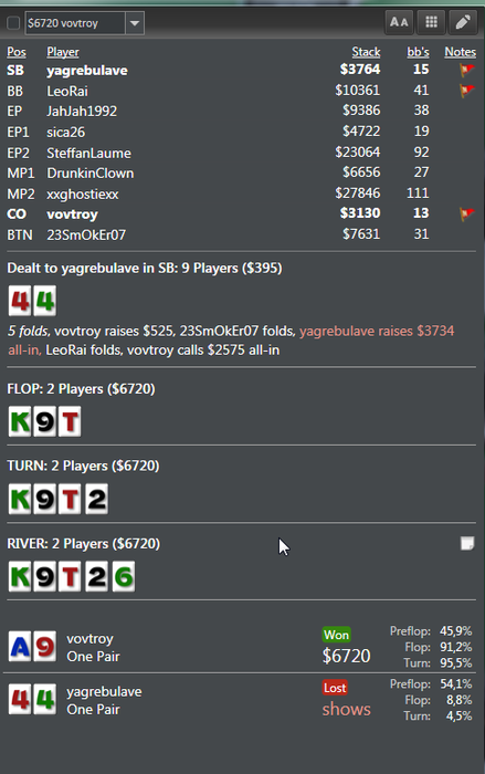уже не первая раздача такая с ним, первые разы думал показалось, но нет он на самом деле считает что в подобных ситуациях лучше рейз колить нежеле пушить