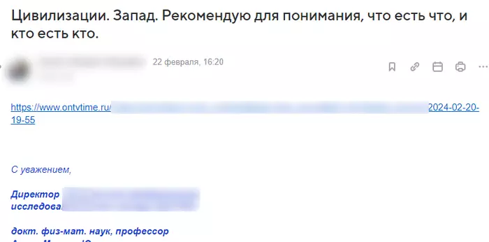 Директор крупнейшего в регионе научного центра, скоро близится 8й десяток. Ещё не будучи директором, он любил "просвещать" молодежь на тему того, как хитрый Сорос убил науку в России, а теперь он вообще превратился в деда, которому дали доступ в интернет, и он на радостях начал все это делать в промышленных масштабах уже на всю аудиторию центра, сидя при этом в кресле его директора. Вот, пожалуйста.
