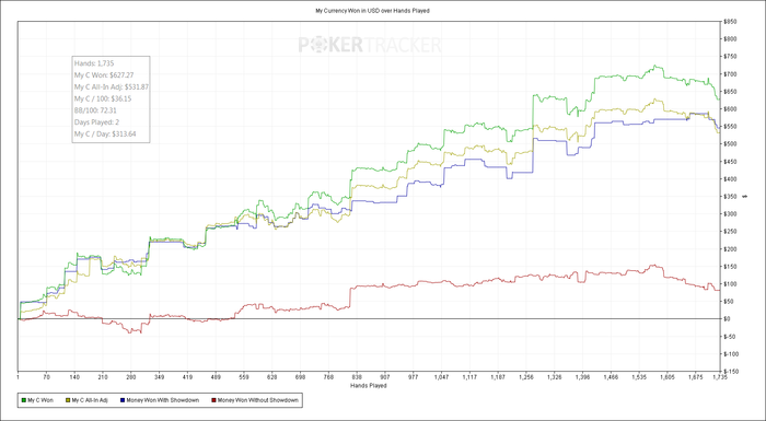 В этом месяце, как и в позапрошлом, цели менялись. Вначале цель была 1к и признал бы месяц хорошим, так как не играл много. Оставалось чуток чтобы её достигнуть и я свалился в пике. Всё, с этой целью было покончена, признана недостижимой. Приоритет поменялся, при -55 решил, что пусть месяц будет нулевой и то нормально. Как результат, прямо грохнулся в полную задницу. Всё, все цели завалены и ни на что не рассчитываю. Как результат вчера сыграл почти нормальную сессию, где мозги могли думать. Плюс по факту получился микро, но главное что уже думал. Интересно другое, при результате +4 стека стал надеяться, что может быть что-то получится и напишу на форуме, что я ещё повоюю. Итог минус 3 стека.