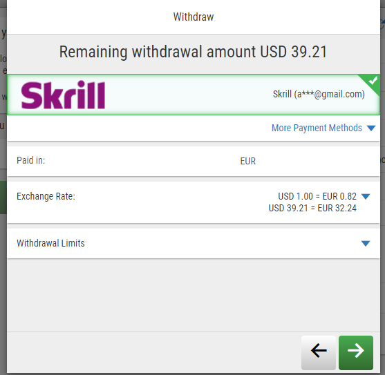 Вывести ты сможешь на тот счет в Skrill, с которого совершал депозит (если основной счет в Skrill у тебя в $, то вывести получится только туда). Если у тебя в Skrill по мимо основного счета, допустим $, есть еще евровый счет, то при выводе из рума на него, все равно будет взята комиссия за конвертацию, т.к. вывод будет проходить через основной счет.