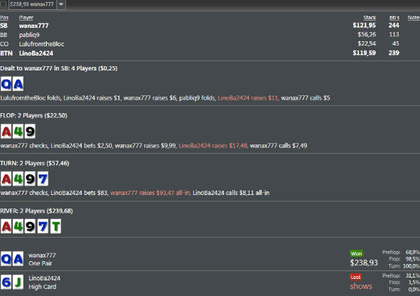 Yaruk7, на терне у меня остаётся только 2 опции розыгрыша, в 50% - чек / фолд и 50% - чек / пуш, я точно так же и с натсами в следующий раз сыграю, но это не точно...