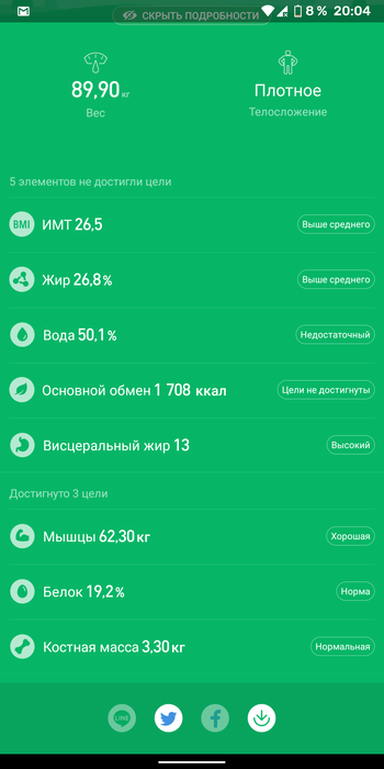 Я напишу тут сейчас, т.к. в дороге нахожусь и доступа не будет. Вес стал 106, не изменился по сути, но я с таким режимом другого не ждал. К следующему отчету исправлюсь. Фото весов кинуть смогу только как вернусь)