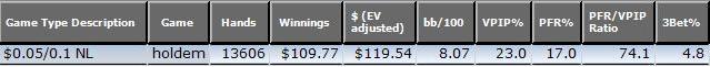 Да все каждый день собираюсь и откладываю... Похоже, все-таки не удается мне взобраться на покерный олимп. Позанимался с тренером, пытался изменить стиль игры на более агрессивный. У меня было где-то 20/15/4, стало 27/21/7,5.