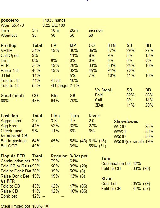2) Тут еще немного намешаны статы. Он вообще в последнее время с ума сходит, и в последние дней 5 играет уже 37/33/12 со стилом с баттона в 100%. Но это тупо от скуки и ощущения превосходства - все-таки не заливает ему на дистанции только К10, пожалуй.