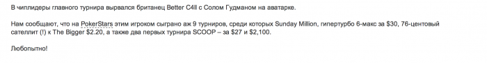 P.S. почитав многие комментарии удивился глубокому цинизму некоторых...пишут о какой-то морали, а сами в турнирах мелких лимитах хуесосят своих опонентов по-черному не стесняясь выражений! Поэтому предлагаю начинать в первую очередь с самих себя...