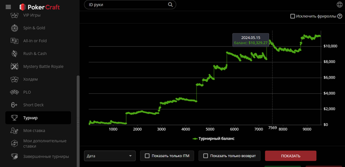 До декабря 2023 график был -2к$, но после большой работы над игрой + нахождении в фондах перевернул график и на текущий момент чистый профит на Pokerok в районе +10к$ (График и заносы на скринах). Бекер нужен, так как последний месяц диспа дала о себе знать и банкролл просел.