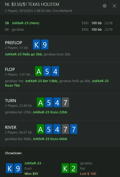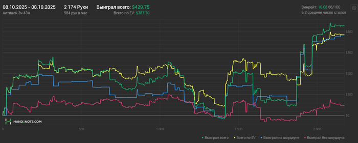 08.10.2025: 223 минут, 2174 рук, nl50-100 +$481.
