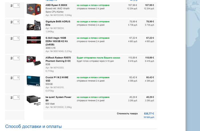 Что же ты творишь Я теперь спать не смогу)) Блин, но нет. Не буду брать на КУ, просто тупо не могу ждать 30 дней+- А, кстати, заплачУ то я в итоге плюс минус одинаково, что с КУ, что у себя в городе, вроде как налог на КУ там выйдет еще нехилый) так что спать смогу) Подскажите лучше с материнкой, менять или потянет все это дело?