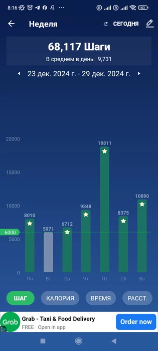 Вписался бы на 6к в день среднее, отчёт буду у себя делать по месяцу. Но 10 для меня много, с учётом тенниса 3-4 раза в неделю, там прям не хочется ходить экстра в эти дни