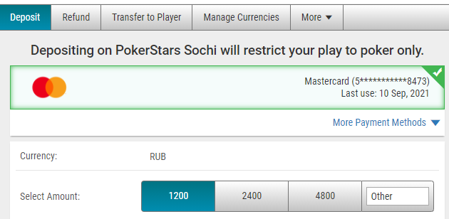 Сделал депозит картой mastercard в клиент Pokerstars Sochi недавно:
