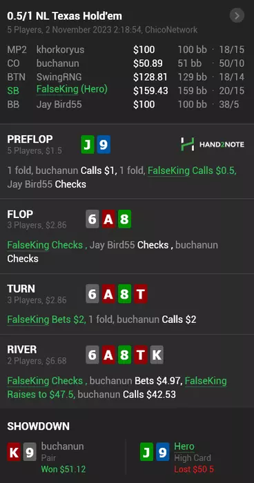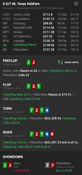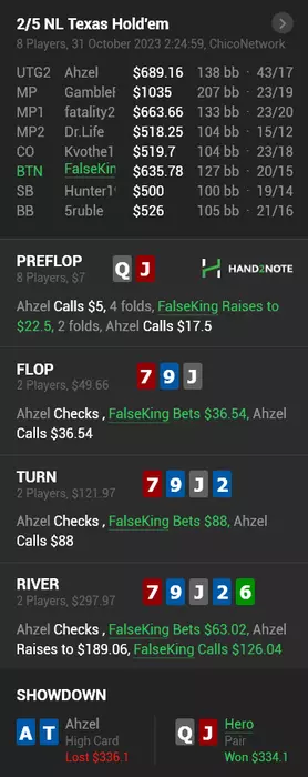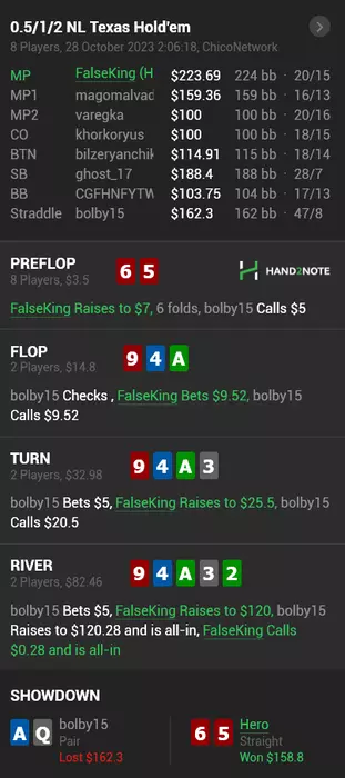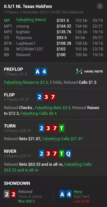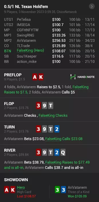 - на 100 миссриднул руку и поставил АИ ривер с валет хай вместо стрита