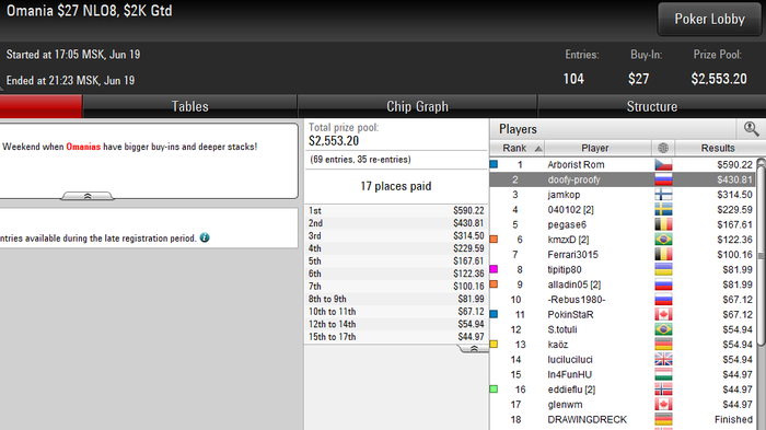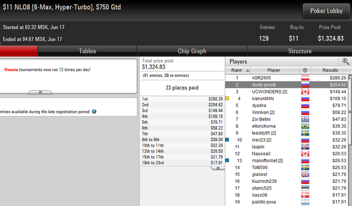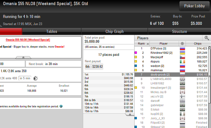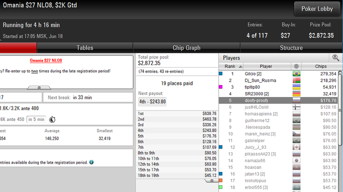 nef681, без реентри получилось 19 турниров, которые я сейчас играю. Я не брал в счет саты на хайроллеры и команию.В среднем можно сказать турниров двадцать пять катаю. Так же я бы с радостью катал 82-ые коки, но я буду делать вылазки когда будет банкролл больше