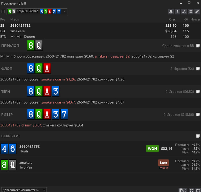 В целом, после Q8o не имеет смысла разбирать. Мог бы спокойно проиграть 1бб а не пол стека+.
