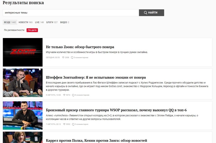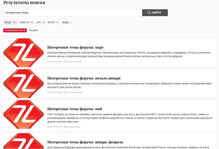 Набираю в поиске "интересные темы" и вижу сортировку по релевантности, вот такую: