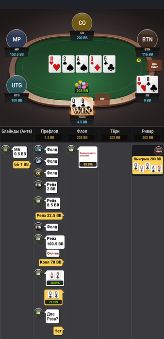 сегодня не удержался и снял кристаллы на счет, в итоге 5 выставлений сверху на префлопе в которых я увидел сеты.