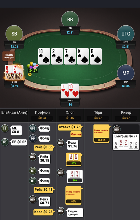 смотрю на эти раздачи и вижу, что у оппонентов весьма обидно много эквити в ситуациях, где я закономерно считал себя впереди. но кассе от этого не легче.