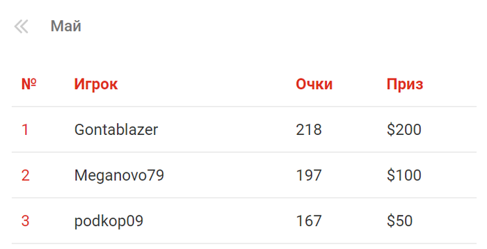 Результаты "Лиги бесплатных турниров" за май.